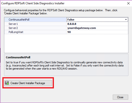 Step 2 – Create a RDPSoft Client Side Diagnostics Installer Package, and Distribute It To End Users Whose Connections You Wish To Troubleshoot